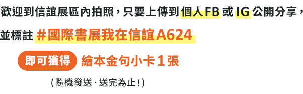 因應春節連假,最後出貨時間為2/12中午12:00;2/13-2/22網路書店暫停出貨、客服服務,造成不便,敬請見諒。