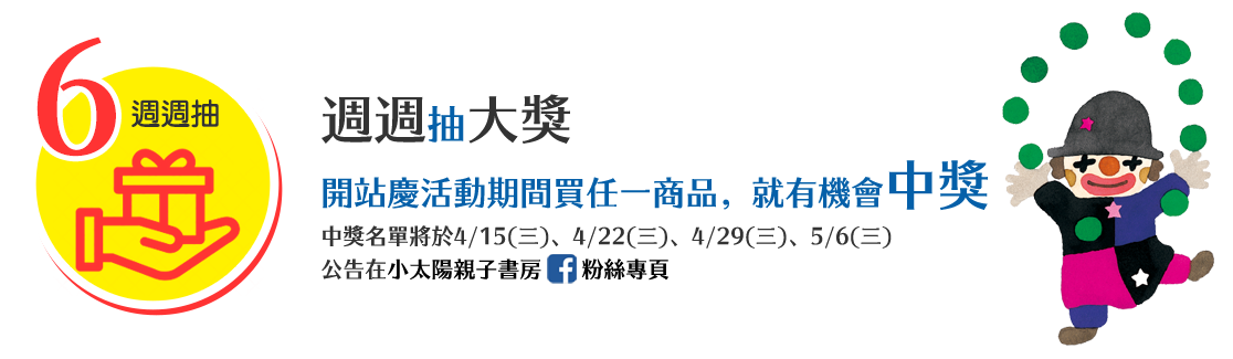 • 週週抽得獎名單及領取方式,請見小太陽親子書房FB粉絲專頁公告,無候補或補抽。