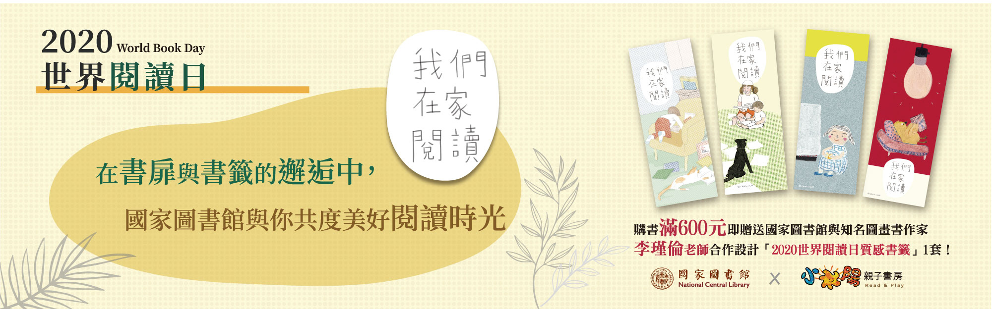 國家圖書館為響應全球閱讀盛事-世界書香日,特別邀請知名圖畫書作家李瑾倫老師,為2020世界閱讀日獨家設計4款閱讀書籤,與多家知名書店合作,攜手推出「我們在家閱讀-購書滿額贈書籤」活動。