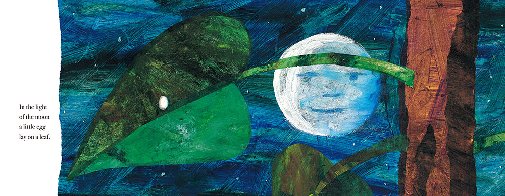 艾瑞.卡爾運用獨特的拼貼技巧,讓色彩不單單只是鮮豔,更能讓孩子看到大自然多層次的美,如毛毛蟲身上的綠,絕對不是坊間單一層次的綠所能比擬的。除此之外,艾瑞.卡爾擅長在豐富的童趣中,展現對生命的讚嘆,當毛毛蟲一路吃啊吃、最後蛻變成美麗的蝴蝶時,生命的可貴多麼令人喜悅。正如《遇見圖畫書百年經典》中彭懿所說的:「這是一本充滿了詩情與創意的圖畫書。說詩意,你看,綠葉、大地、蝴蝶、五彩繽紛的果實、清輝四射的月亮、炙熱似火的太陽……作者如同一個激情洋溢的詩人,用奔放不羈而又濃烈絢麗的顏色,為孩子們唱出了一首生命的禮讚」。