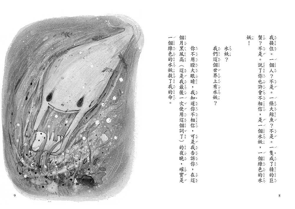 爸爸真的變成了一個水妖,從大海游到河裡,又從河裡游進自來水管,回到家裡與孩子重逢。當媽媽回家時,不想嚇到媽媽的爸爸,又縮回水管,孩子只好把爸爸放進魚缸裡、藏在床底下,以免爸爸被水沖走。短短幾天的相聚,父子倆開心極了,但終究要永別,離開前,爸爸用水妖的魔法,給了孩子一個很棒的生日禮物。