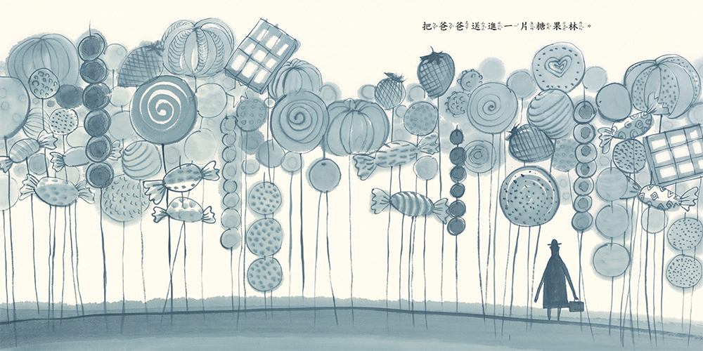 作者呂江將幼年時對父親的仰望與憧憬,所有心中不安、喜悅、憂鬱、傷感、忐忑、驚嚇、希望、快樂、等待……的情感,運用重疊混合的灰藍色筆墨將之訴諸於畫面上,圖與文構築出層次豐富又極富韻律感,時而動、時而靜、時而真、時而假的故事節奏,帶給小讀者一次奇特又溫馨的閱讀經驗!