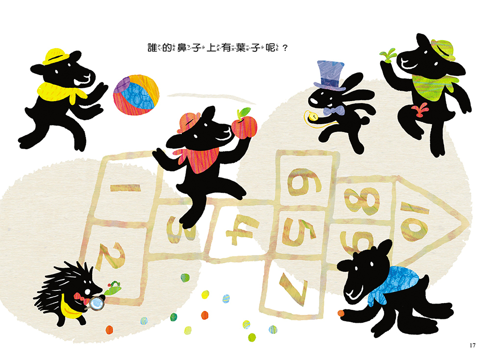 這兩位創作者很喜歡和孩子一起玩遊戲,總是會在他們的作品中加入互動元素,帶著孩子邊讀邊玩,就像這本書,孩子們可以循著狗汪汪和花生米的腳步,一起觀察、尋找每一個線索,幫鴨媽媽找到小鴨子,感受故事帶來的驚喜與樂趣。