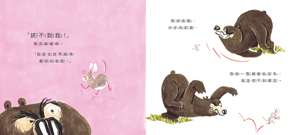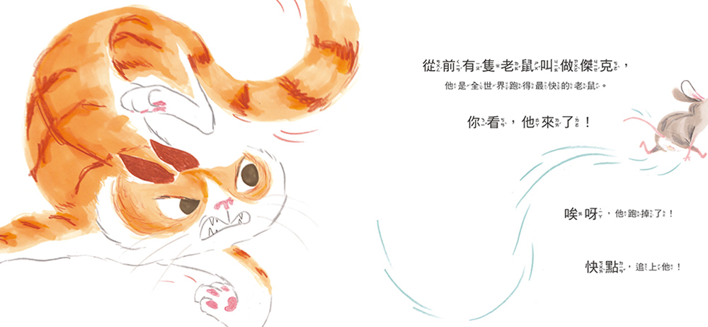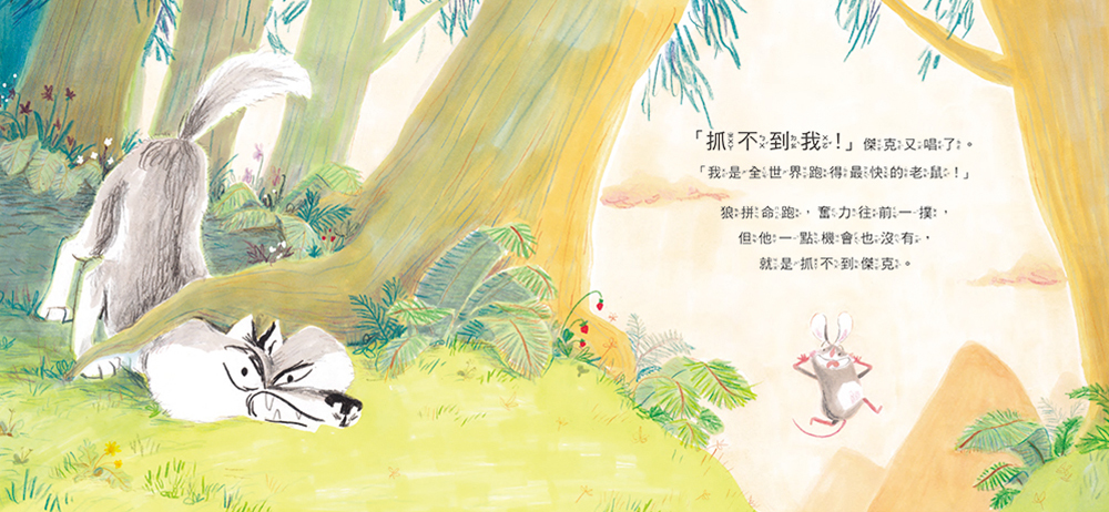 「抓不到我!」小老鼠跑得像風一樣快,把老貓耍得團團轉,連狐狸、狼和熊也都抓不到他!他速度如閃電、說話很尖酸、表情很欠揍,可是偏偏肥滋滋的、既鮮嫩又美味的樣子,叫誰都想咬上一口。