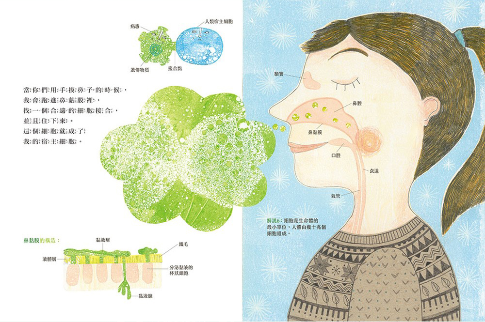 鼻病毒大解密本書用擬人化的口吻,由主角威利親自導覽鼻病毒的生活,並帶大家認識各種病毒,如流感病毒、德國麻疹病毒等。
