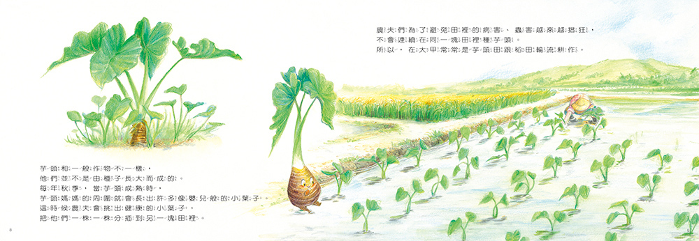 芋頭就像一個難養的孩子呢? 信誼基金會和永豐餘生技GREEN& SAFE合作企畫的「好好吃故事書」系列,繼五月的《愛吹風的洋蔥》之後,十月將前進台中大甲,帶孩子一起來認識《好難養的芋頭》。