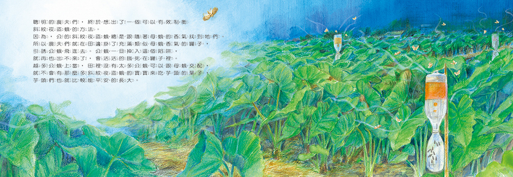 前後大約需要半年的時間。」在農夫的眼裡,芋頭就像是一個難養的孩子,需要細心照顧。解決了灌溉問題,在颱風來臨前,必須先砍掉葉子,免得被吹倒或連根拔起;還要注意福壽螺、斜紋夜盜蛾等蟲害。聰明的農夫們只能想盡辦法,找出不破壞生態的方法來保護芋頭長大。