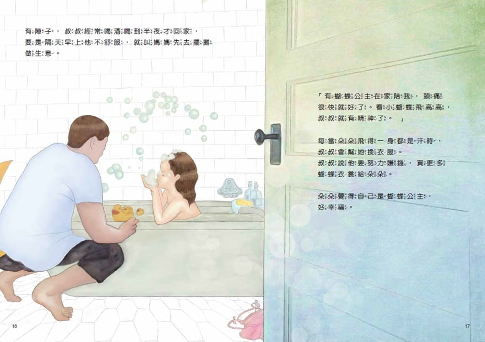 ※隨書附贈《蝴蝶朵朵 應用指導手冊》,適合一線專業機構與人員,以及二線的教育系統、家庭社區使用。共讀繪本之後,與孩子進行完整的對話與討論。