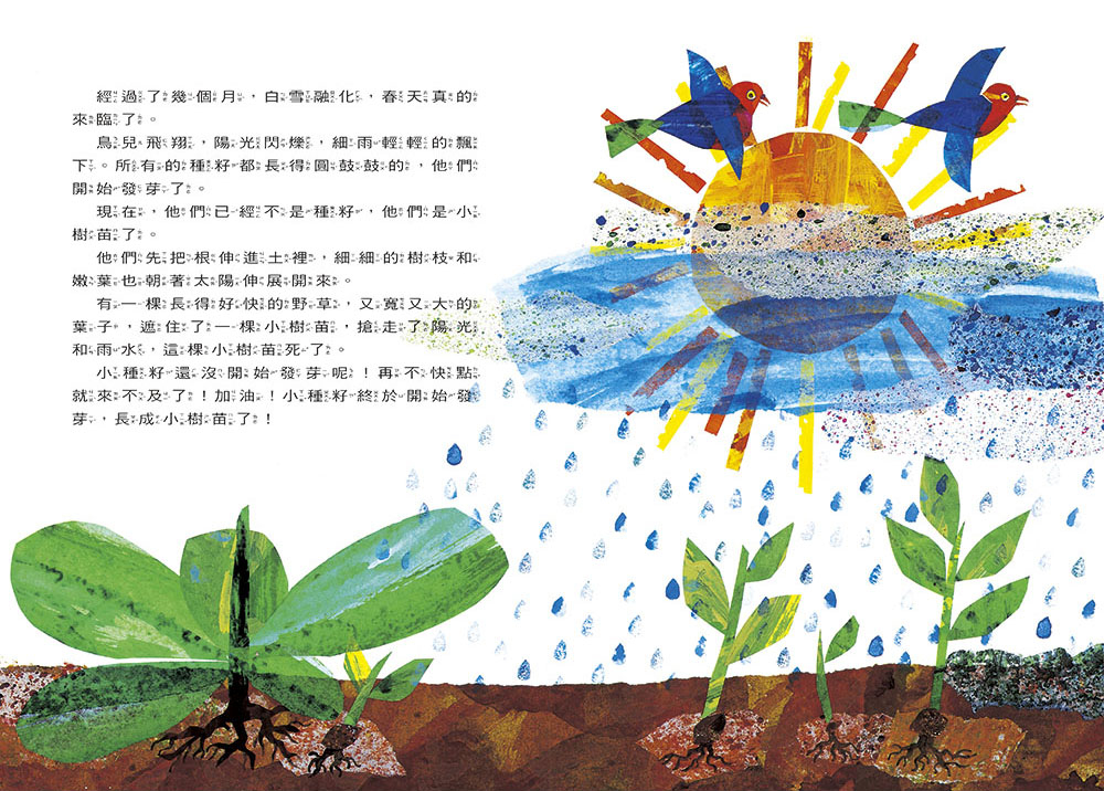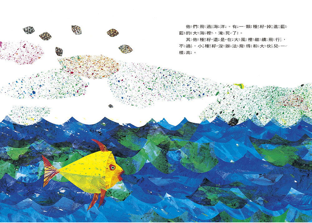 艾瑞.卡爾透過精妙的拼貼畫,將小種籽看似簡單的生命週期,變成激勵人心的生命教育故事。隨著四季更替,秋風再次吹起花朵中的種籽,再次帶著種籽飛呀飛,展開另一段新生命,大自然因而生生不息。藉由本書,讓孩子體會到生命的難能可貴,萬物都值得被尊重。