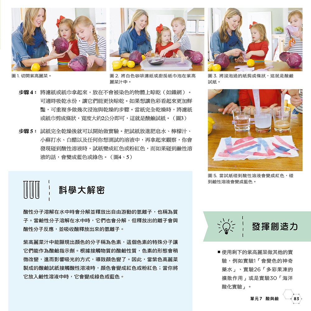 單元07 酸與鹼 80實驗29 紫高麗菜酸鹼試紙 82