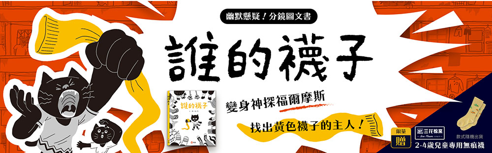一格一格黑白圖文分鏡,一雙黃色襪子線索指引,帶你追著小貓的腳步,像扮演福爾摩斯一樣,找出襪子的主人是誰!