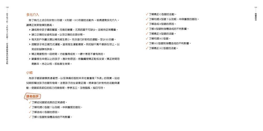 如何從小在生活中培養「內感覺」?語言發展障礙如何分階段引導?注意力不足過動症的孩子如何輔導?你知道扁平足和高足弓也會影響健康嗎?孩子有O形、X形或XO形腿,怎麼改善?這本書由專研感覺統合理論與實務的高麗芷老師,累積30多年的經驗及最新研究証據,深入淺出,提出常見的發展障礙及輔助對策、簡易活動方法,鼓勵父母、保母、幼教老師學會觀察及察覺問題,提供孩子適切的感覺統合刺激,及早獲得改善。