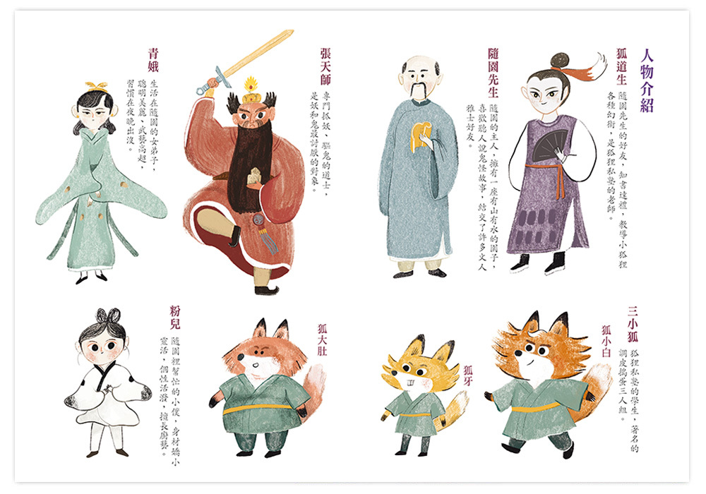 以中國古典文學《子不語》為靈感素材,改編成白話版的輕鬼怪練功故事。看小狐狸學習各種幻術課,招式連連,有成功有失敗,過程令人嘖嘖稱奇;看三隻小狐調皮偷溜私塾遇險,狐狸老師如何發揮機智,化解各種危機。當中,還設計了清朝文人袁枚的隨園居所,以及對節令美食的喜好,在經歷緊張刺激的小狐狸冒險中,也能同時享受季節飲食的美好滋味。