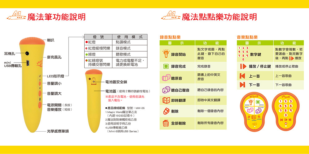 6.魔法筆請勿浸水、近火、放高溫處,或丟摔、敲打,以免讀取功能受損。