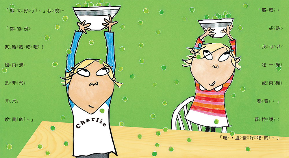 本書由四歲的蘿拉和她的哥哥查理領銜主演。蘿拉是一個愛挑食的小妹妹,查理於是想盡辦法,要完成爸媽交待他照顧蘿拉的責任。但蘿拉不吃的東西可多了!她不吃綠色的東西,不吃馬鈴薯,不吃紅蘿蔔,不吃乳酪……,有一天查理想到一個好辦法。查理把馬鈴薯泥說成是富士山頂上的白雲,炸魚塊說是美人魚愛吃的零食…,蘿拉在好奇下,試吃了一口又一口,到最後竟然還主動要求要吃她最不喜歡吃的「番茄」!