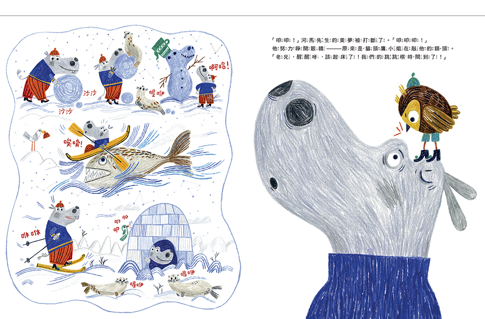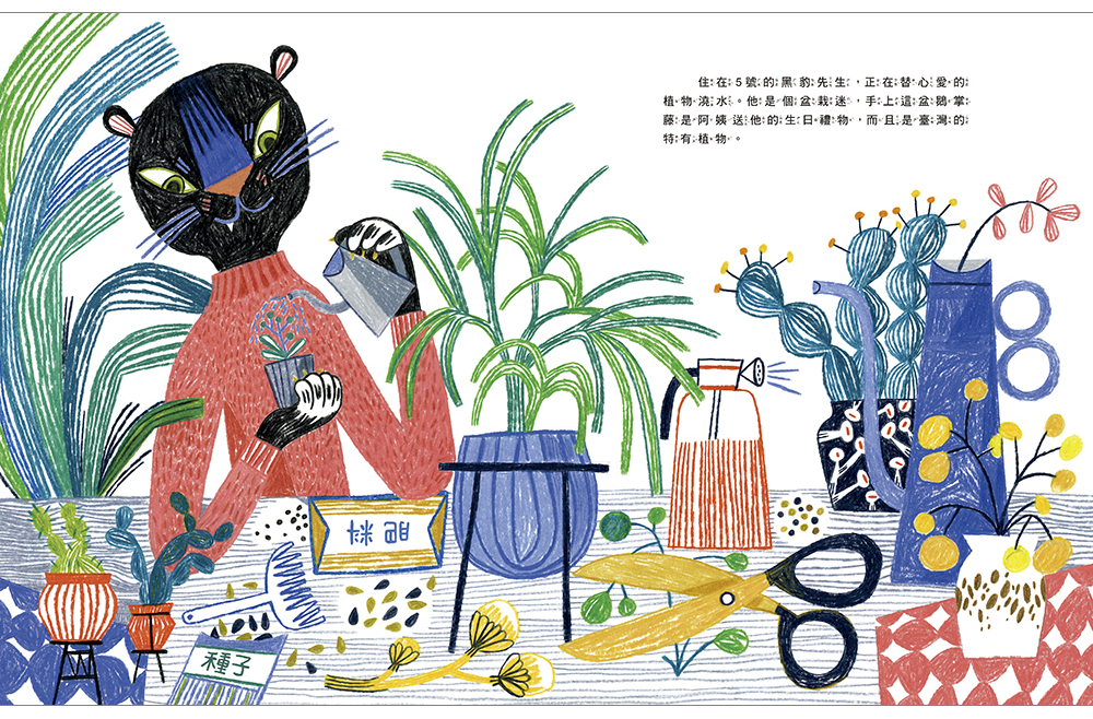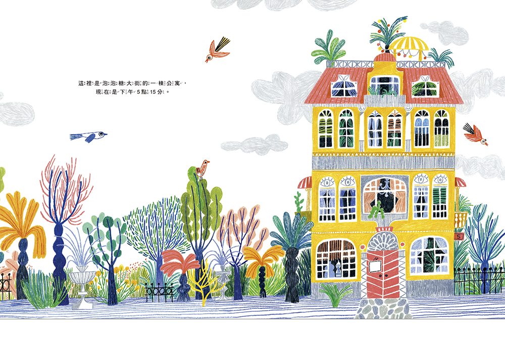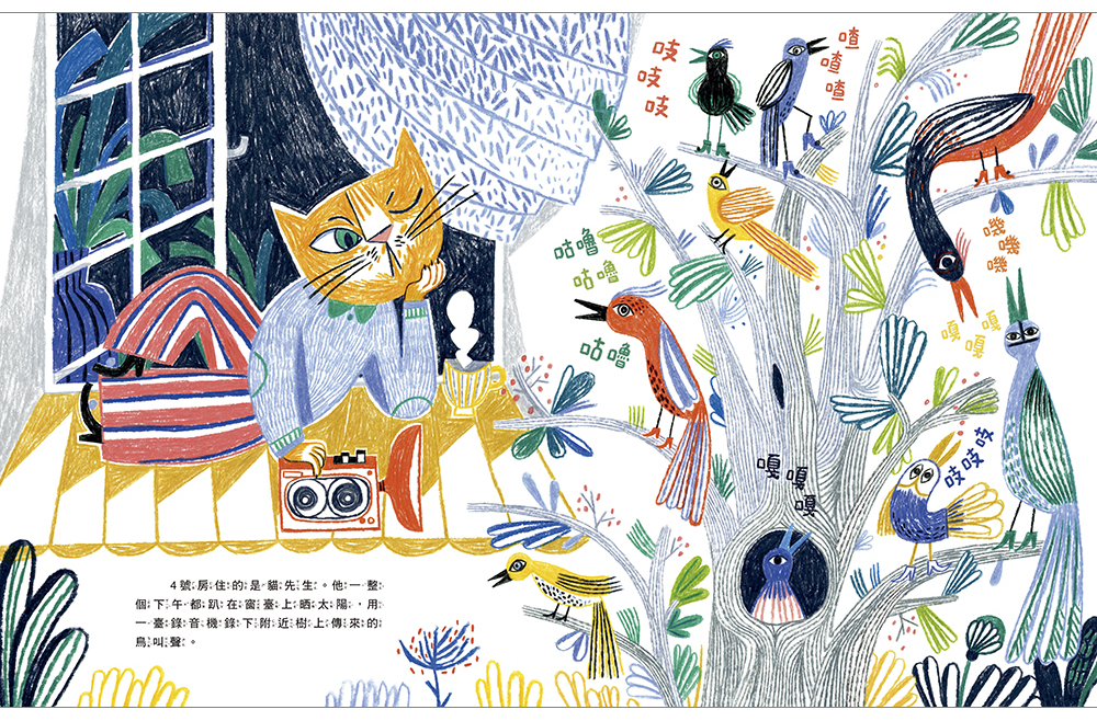 全書繽紛多彩的畫面,在波隆那畫展中備受矚目,不只畫出了聲音、溫度與氣味,還帶有跳舞的律動感,讓人忍不住跟著一起搖擺。