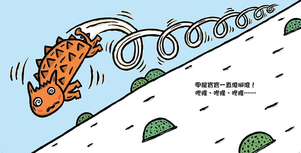 這時候,什麼才能讓沮喪的甲龍寶寶重新站起來呢?一本增進親子關係的寶寶書,以平易近人的可愛畫風,帶領小小讀者與父母一同進入愛的世界!好奇的甲龍寶寶,第一次獨自探索不一樣的世界,開心地跑了起來……唉呀!甲龍寶寶跑得太快,一不小心撞到樹幹、滾下山坡、掉到水裡……正當甲龍寶寶沮喪地快哭出來的時候,看到了遠方的某處,又元氣十足地開始奔跑……