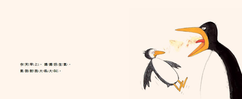 有一天,企鵝媽媽好生氣,氣得對小企鵝大吼大叫。