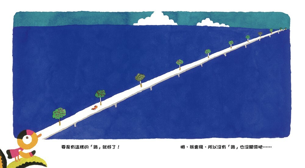 就像書中這隻可愛的鳥兒,身形雖小卻志氣高昂,相信自己一路往前飛,就可以飛到很遠的地方。即使中途遇到了阻礙,他一點也不慌張,各種愉快的想像帶著他探索世界,幫助他樂觀面對挑戰,也引導他認識自己的能力,並思索什麼才是真正想走的道路,只要是出於自我的選擇,並付出了努力,即使不成功,依然是正確的選擇。