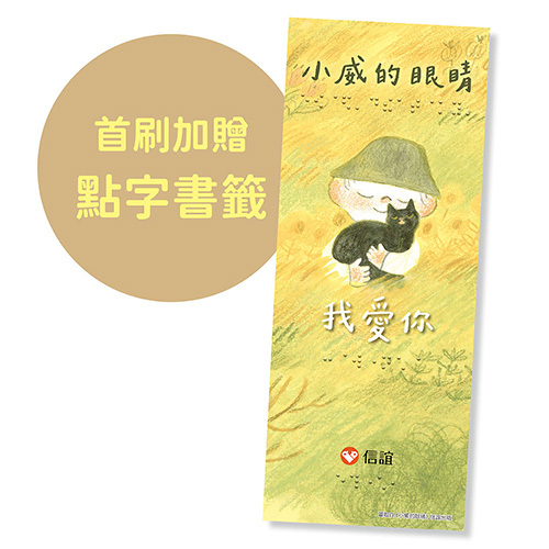 ☉首刷加贈☉ 點字書籤透過觸摸書籤上「小威的眼睛」和「我愛你」凸印點字,