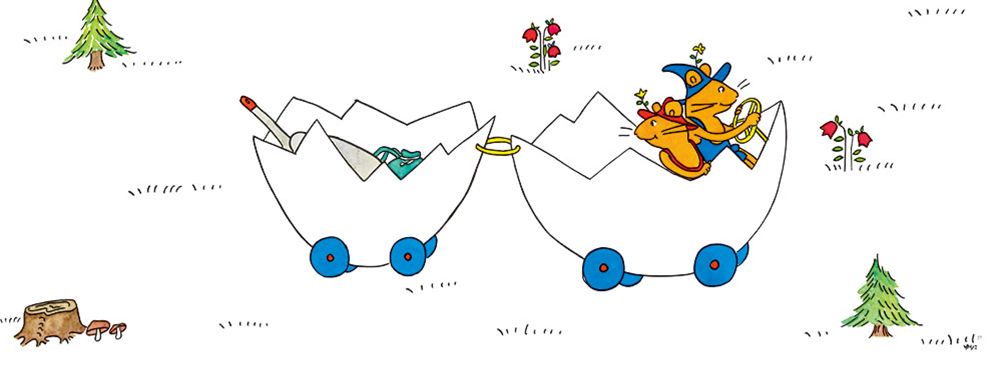 這是一個充滿趣味和驚喜的故事,兩隻小野鼠用名字編的歌、拖著大鍋子的畫面、撿樹枝烤蛋糕的過程……都讓孩子喜愛得不得了。想也知道,有哪個孩子不愛金黃色的大蛋糕呢?更別說他們最後還把蛋殼做成車子開回家呢!