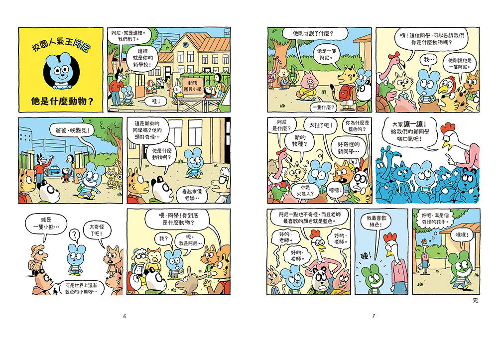 阿尼和朋友們每天發生的趣事讓我看得很開心。故事很幽默,角色都是動物,但孩子對裡面的情節很有共鳴,可以一起討論學校生活,非常好!