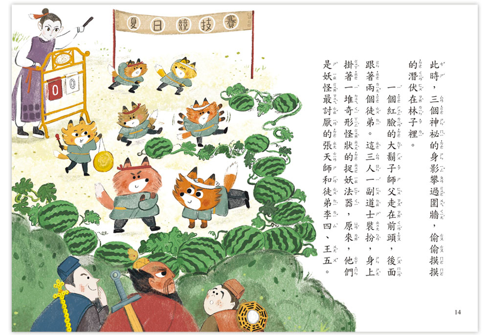 狐狸私塾勤練功,更少不了季節美食滋味。「春吃芽,夏吃瓜」,夏季盛產瓜果,水分多汁、消暑解熱,紛紛入菜書中佳餚,不論是同小狐狸們,賽後來杯沁涼的西瓜汁,或是同隨園先生,夏夜辦桌品嘗瓜甜美味,以書香佐美食,佐蛙鳴蟬聲,帶小讀者在炎炎夏日,體驗閱讀與口腹兼具的節氣好生活。