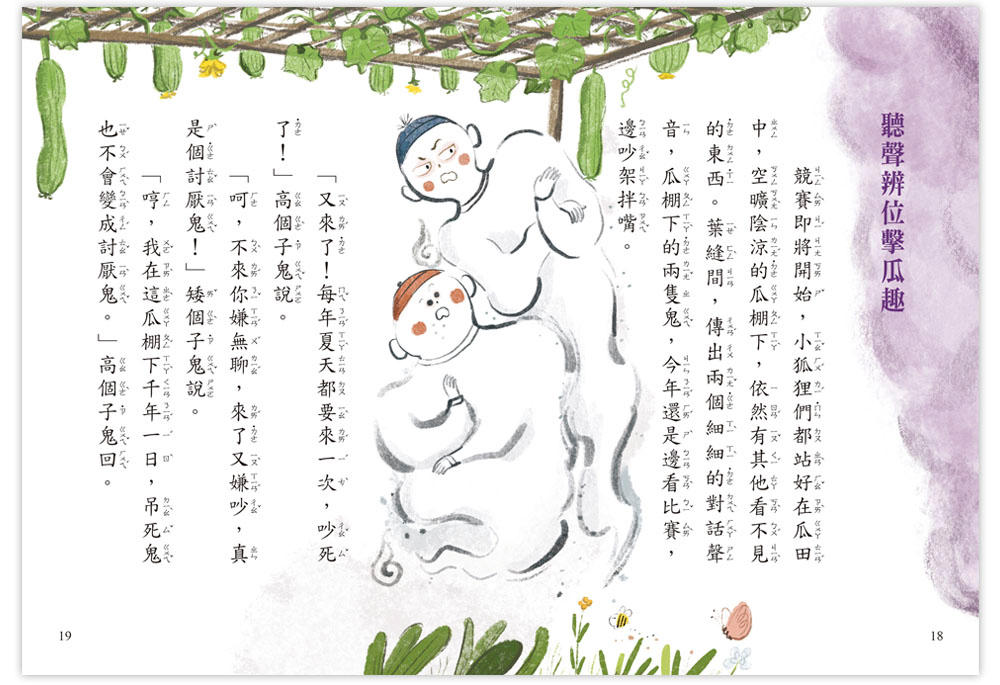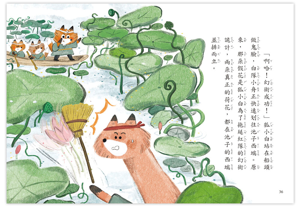 說到夏天,讓人透心涼的除了剉冰,就屬農曆鬼月了。鬼月的傳說總讓人頭皮發麻,傳說中,鬼月是水鬼抓交替的時刻,提醒喜愛去海邊玩的小讀者,在開心玩樂之餘,也要多注意戲水安全。 這一集的《狐狸私塾》結合應景的夏季節令,小狐狸們頂著大太陽,在瓜田中角逐競賽,在荷花池中划舟採荷……進行了一場熱鬧有趣的夏日運動會。