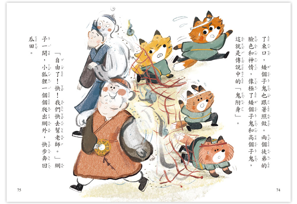 正當雙方你來我往,使出幻術拚得平分秋色,最後一賽,拉藤奪鈴,列隊競賽拔河,收妖魔人張天師徒,卻暗中破壞攪局,撒八卦網捕狐,還用北斗七星劍召喚「天雷砸」,引來瓜棚下觀賽的高、矮個子鬼,紛紛出手相救,命懸一線之間,狐狸師生會如何逢凶化吉呢?