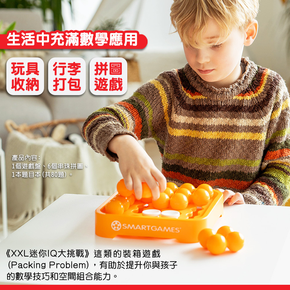 3. 生活中充滿數學應用數學在日常生活中的應用非常有趣,例如玩具收納、行李打包、拼圖遊戲,這些活動都考驗著我們的空間組合技巧。這些技巧不僅能提升解決問題的能力,還能增強邏輯思維和創造力。像《XXL迷你IQ大挑戰》這類的裝箱遊戲(Packing Problem),在玩樂中學習數學,有助提升你與孩子的數學技巧和空間組合能力,當孩子專注玩桌遊時,不僅培養專注力,在挑戰多關後能提升自信與成就感,培養孩子面對生活中各種挑戰的適應力!