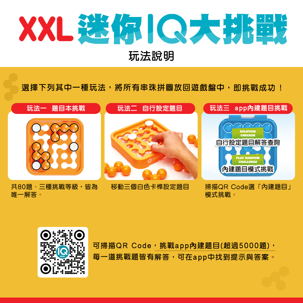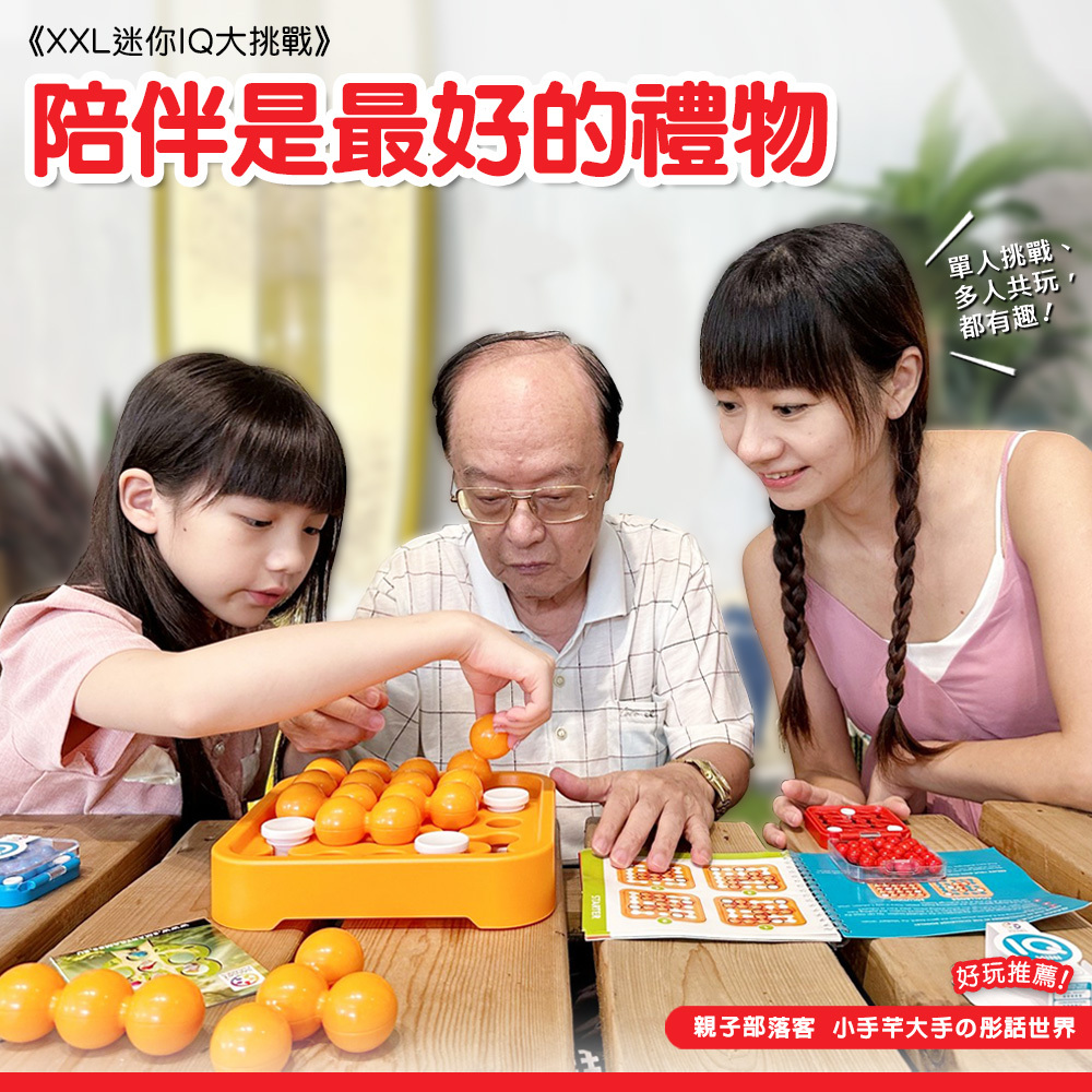 全球IQ粉絲引頸期待,放大版的《迷你IQ大挑戰》-《XXL 迷你IQ大挑戰》終於熱鬧上市,適合全家、祖孫及朋友互相出題挑戰,讓益智動腦的同時,增進彼此感情,快來一起挑戰智力,享受遊戲樂趣吧!