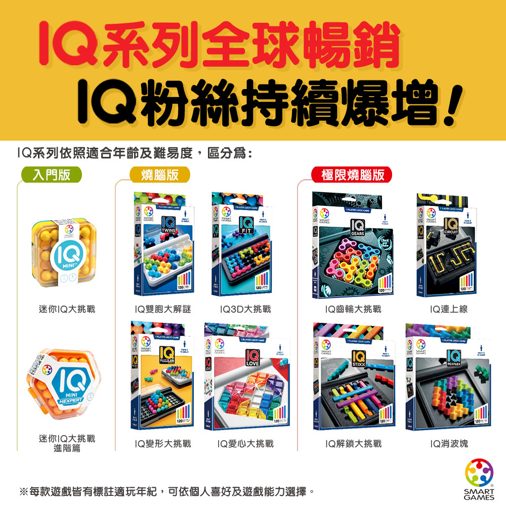 6. IQ系列全球暢銷 IQ粉絲持續爆增依照年齡及難易度,IQ隨身系列桌遊可分為: