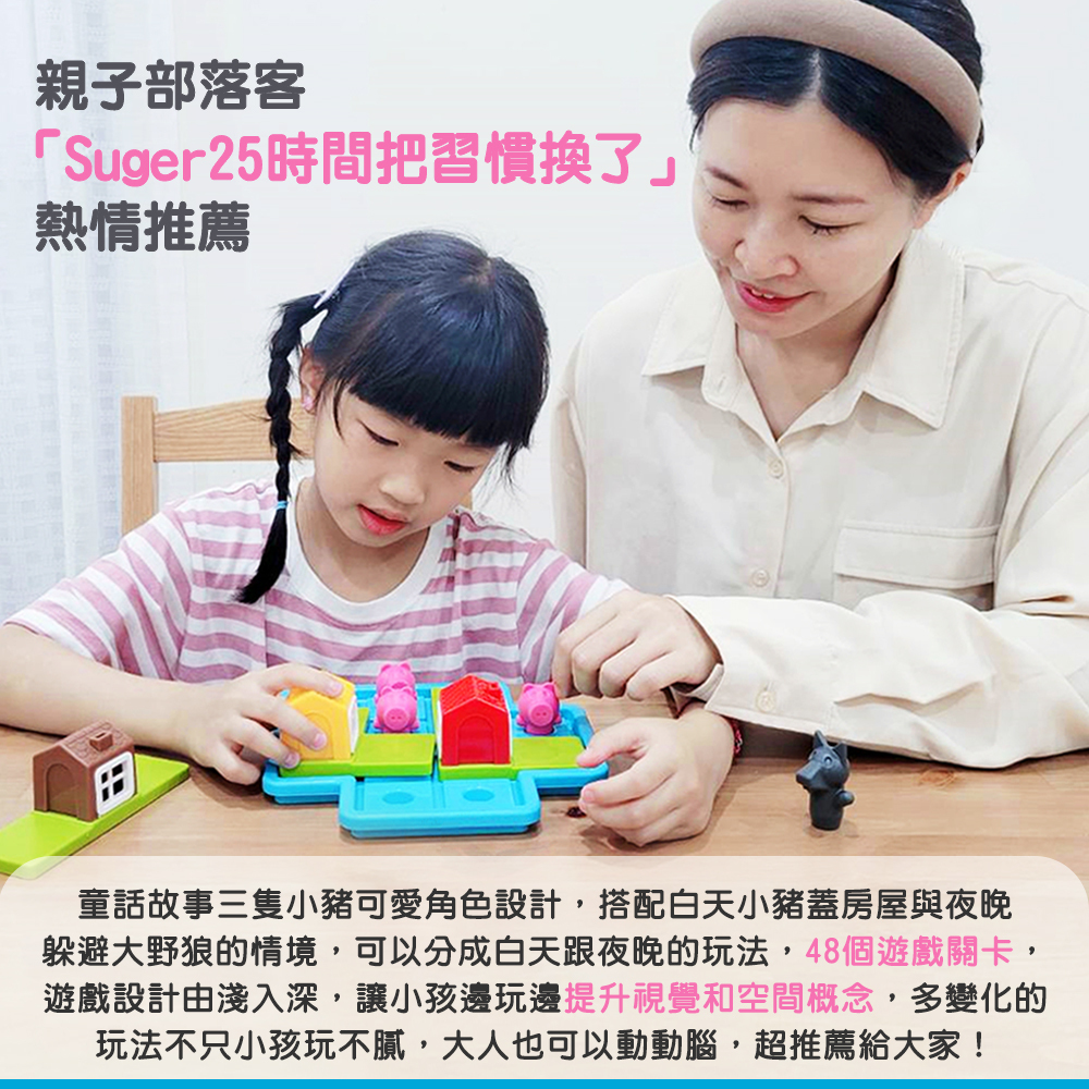 5.親子部落客推薦/ Suger25 時間把習慣換了 熱情推薦利用童話故事三隻小豬可愛角色設計,搭配白天小豬蓋房屋與夜晚躲避大野狼的情境,可以分成白天跟夜晚的玩法,48個遊戲關卡,遊戲設計由淺入深,讓小孩邊玩邊提升視覺和空間概念,多變化的玩法不只小孩玩不膩,大人也可以動動腦,超推薦給大家!