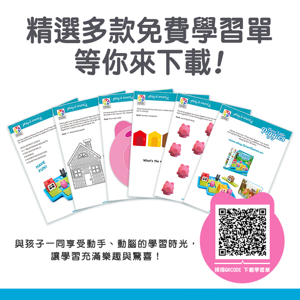 6.精選多款免費學習單等你來下載!與孩子一同享受動手、動腦的學習時光,讓學習充滿樂趣與驚喜!素材下載link PlayItSmart-SmartGames-3-Little-Piggies.pdf