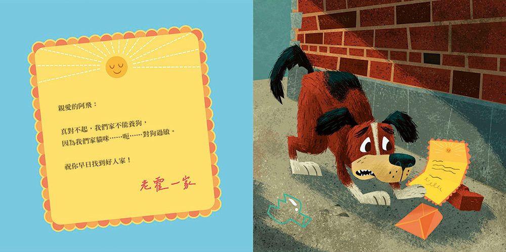 .阿飛絕對可以找到主人,因為每個孩子都想收留他!他的信真摯可愛,充滿生命力。我喜歡他用不同的信紙寫信,還有不同人回信的內容。有的回覆不錯,有的語氣不是很友善……不過看到結局,你一定會直接融化!(沒有劇透)