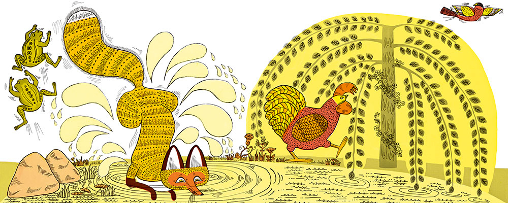 相較之下,狐狸在哈群斯的畫筆下顯得活靈活現。狐狸貪婪、飢腸轆轆的神情全寫在臉上。然而,看似精明的狐狸,卻老是笨手笨腳的傷到自己。看似狀況外的母雞卻總是逃過一劫。正因為母雞蘿絲和狐狸這樣的性格對比,編織出了這個高潮迭起,笑聲不斷的經典故事!