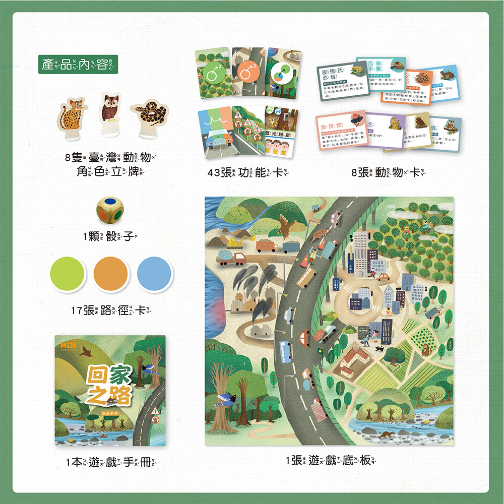 隨著經濟蓬勃發展,一條條的馬路幫助我們能開著車到山上、海邊、城市、田野等地方,但有些地方原本是野生動物居住與活動的區域,使得許多動物需要經過馬路才能抵達想去的地方。而這些動物可能在經過馬路時,來不及躲開車子而遭到撞擊,並因此受傷、甚至死亡。玩家們將扮演台灣最常遭受路殺威脅的8種動物,一起來試試看如何能平安到家!