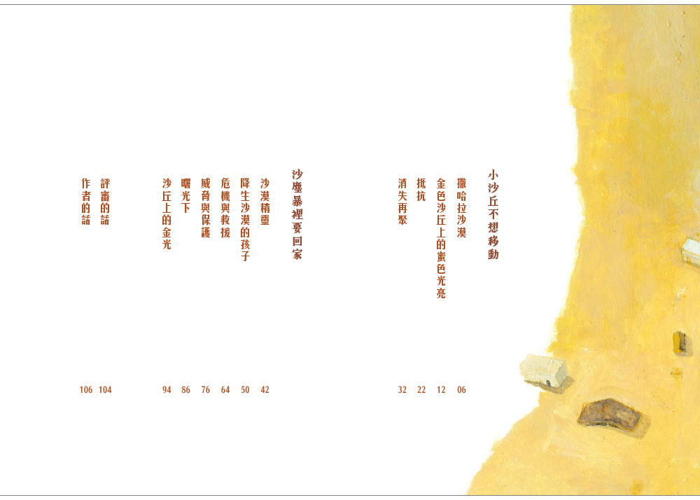 我將自然生態、身邊人的生命經歷與個人體悟揉成故事,願與島嶼孩子們分享撒哈拉的多重樣貌:殘酷與溫柔共存一如沙塵暴,迷濛甚而摧殘了眼前的荒漠,卻滋養了未知的他鄉。是愛讓生命流轉,所有生靈莫不活在一張隱形網絡,相互牽動。