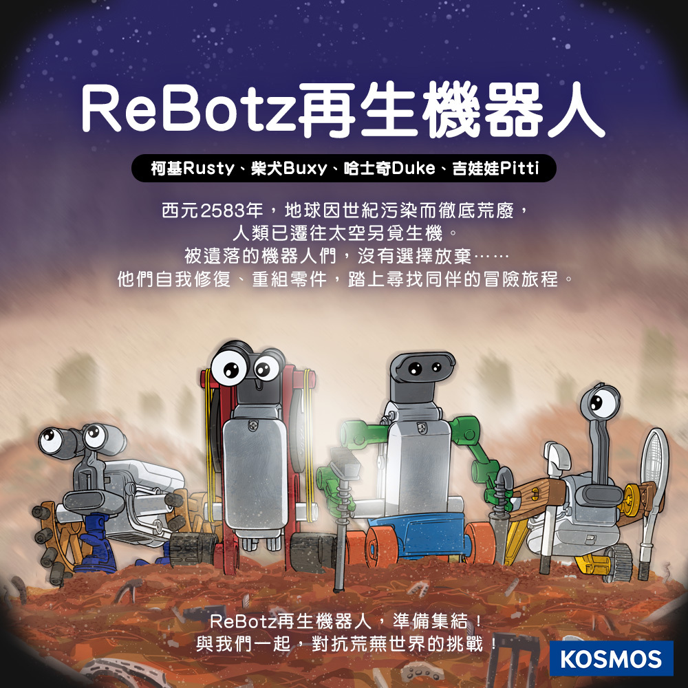 4. 全系列探索 × STREAM啟發ReBotz 再生機器人系列共四款角色:哈士奇 Duke、柴犬 Buxy、柯基 Rusty、吉娃娃 Pitti。