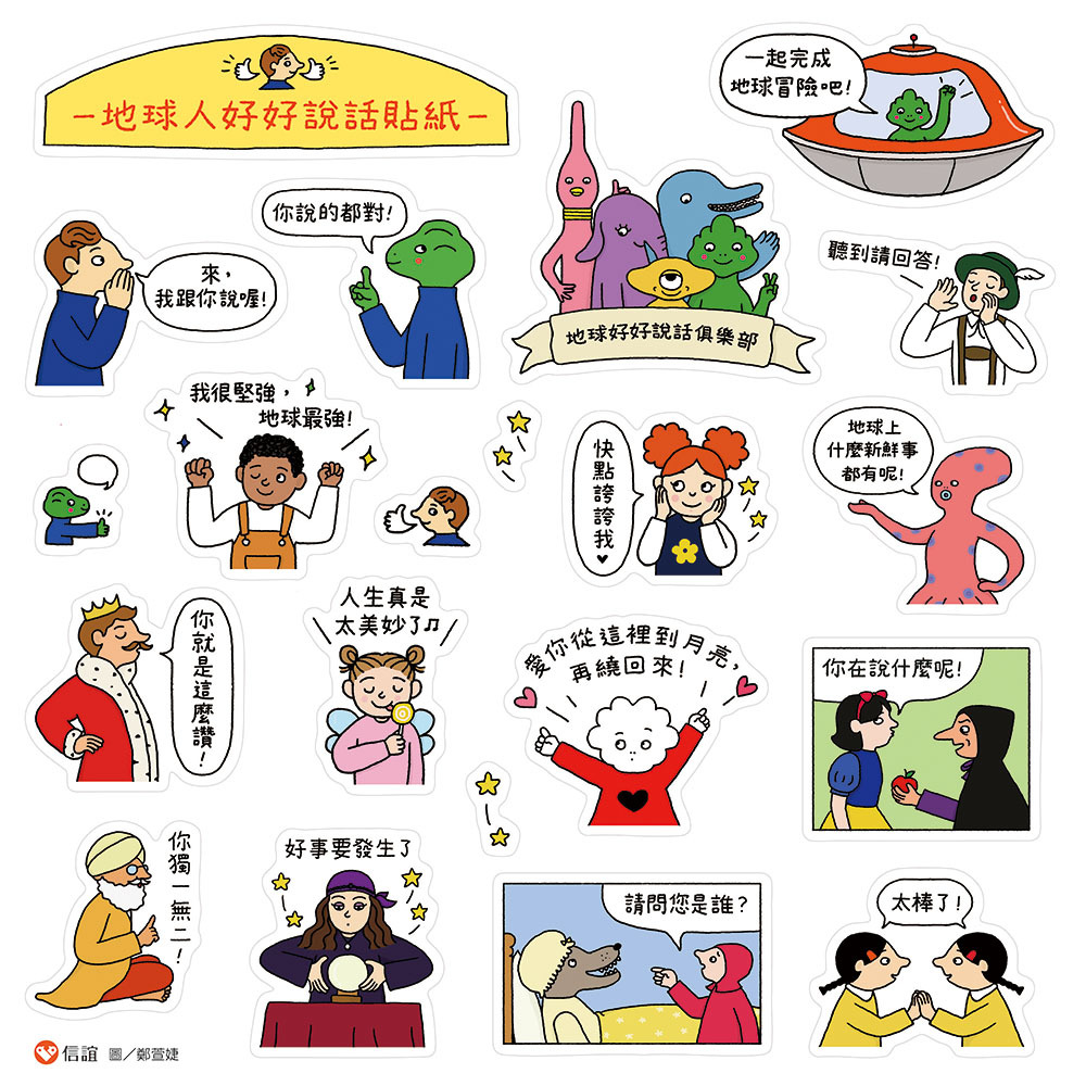 文/鄭萱婕這幾年頻繁在社群上看到朋友分享寶寶誕生的感動時刻,他們會在紅咚咚又皺巴巴的嬰兒照片配上一段充滿愛意的文字,而開頭通常是:「寶貝,歡迎來到地球!」我覺得歡迎新生兒來到地球的說法很有趣,彷彿他們就是外星來的小生物,後來又想如果他們是地球的新訪客,那我就是先來地球的大前輩了吧!秉持著倚老賣老的精神,我應該要好好關照後輩,告訴他們點什麼,建立前輩的威嚴,於是,就有了這本書《來,我跟你說―地球人聽話指南》。 這個故事情節非常簡單,主角是個名叫貝貝的外星人,他為了取得地球居留證,被半強迫學習地球的語言。而他的第一堂課就是聆聽,聽明白話中的含意,像是有人把你叫到一旁嚴肅的說:「來,我跟你說……」,就要了解事情可能不太簡單,必須提起精神來聽;如果是街坊長輩一臉慈祥的說:「來,我跟你說……」,八成是要說他們當年的英勇事蹟或求認同,聽話時偶爾神遊也不要緊。同樣一句話在不同的時空背景下,傳遞的意思可能有所不同,如果再加上不同的語氣和肢體語言就差得更多了,這也是我覺得語言有趣的地方。