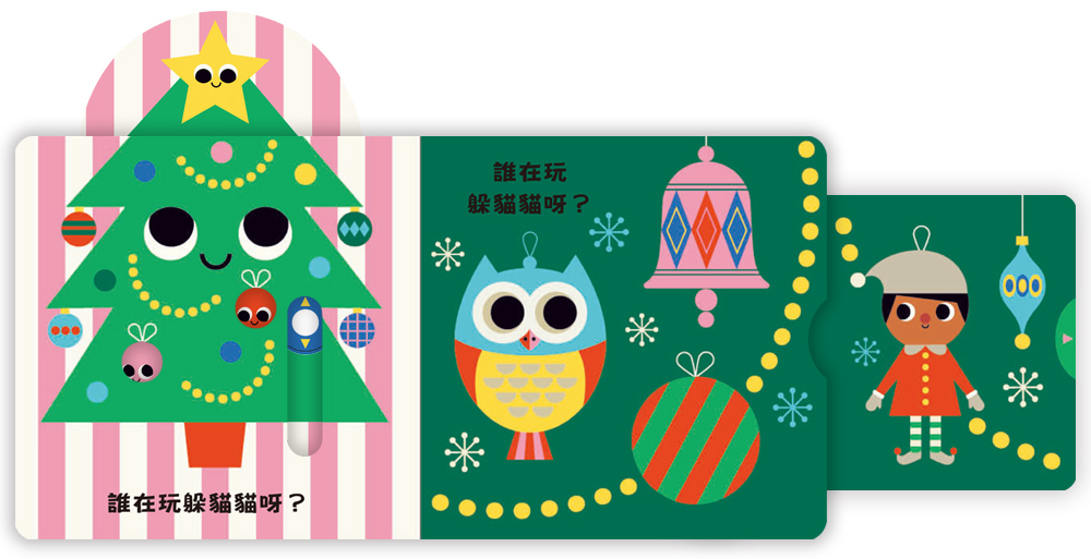 誰在玩躲貓貓呀?手指伸進洞裡推一推,哇!是聖誕樹!