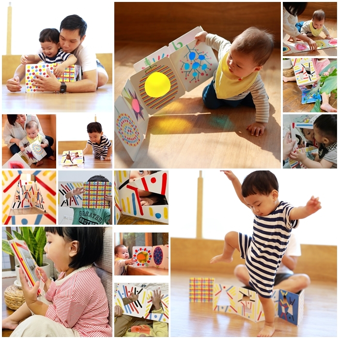運用紅、黃、藍的點與線變成生動的角色,在每一頁跳著、舞著,試試看!讓寶寶把書展開、翻轉、折疊,透過書上的小洞、鏡子看世界,探索中體驗視覺與空間的豐富變化!