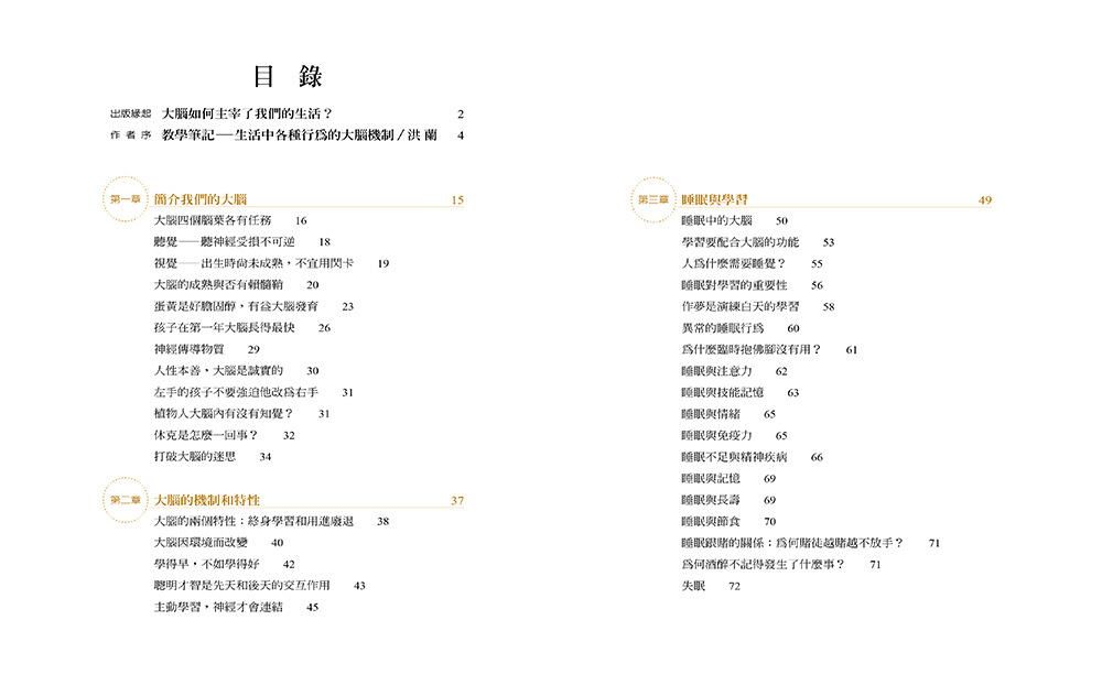 文/洪蘭 臺北醫學大學、中央大學 講座教授這是我寫本書的目的,希望讀者能透過對自身行為經驗的了解,去閱讀更多其他跟大腦有關的書籍,去除愚昧,打破一般人對大腦的迷思,不要再喝符水或去收驚,花辛苦加班賺來的血汗錢去替孩子潛能開發、右腦開發或去參加記憶補習班來提升他的考試成績,我希望父母能用科學的方法來解釋孩子的行為,從而提昇我們國民的品質,因為國民的教育水準就是國家的力量。