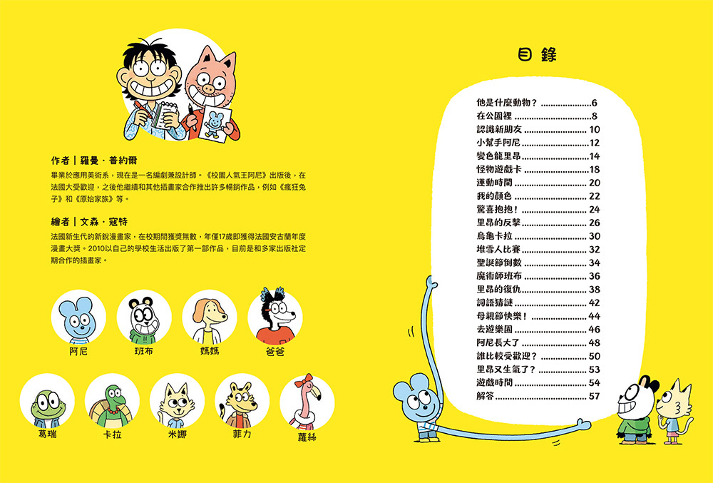 作者介紹羅曼.普約爾(Romain Pujol)畢業於應用美術系,現在是一名編劇兼設計師。《校園人氣王阿尼》出版後,在法國大受歡迎,之後他繼續和其他插畫家合作推出許多暢銷作品,例如《瘋狂兔子》和《原始家族》等。